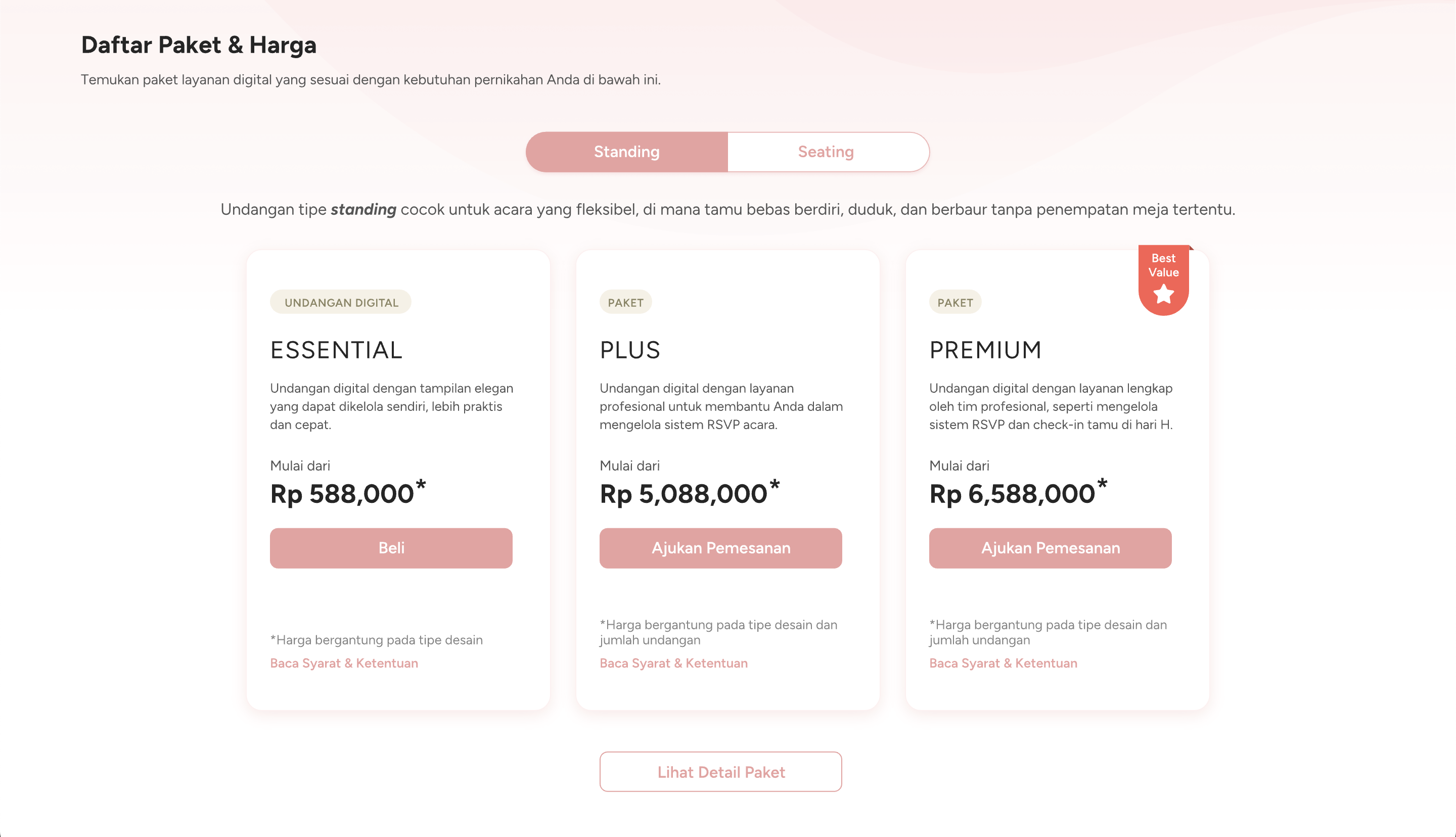 2. Anda akan diarahkan ke halaman Daftar Paket & Harga. Pilih paket sesuai kebutuhan acara Anda, lalu: