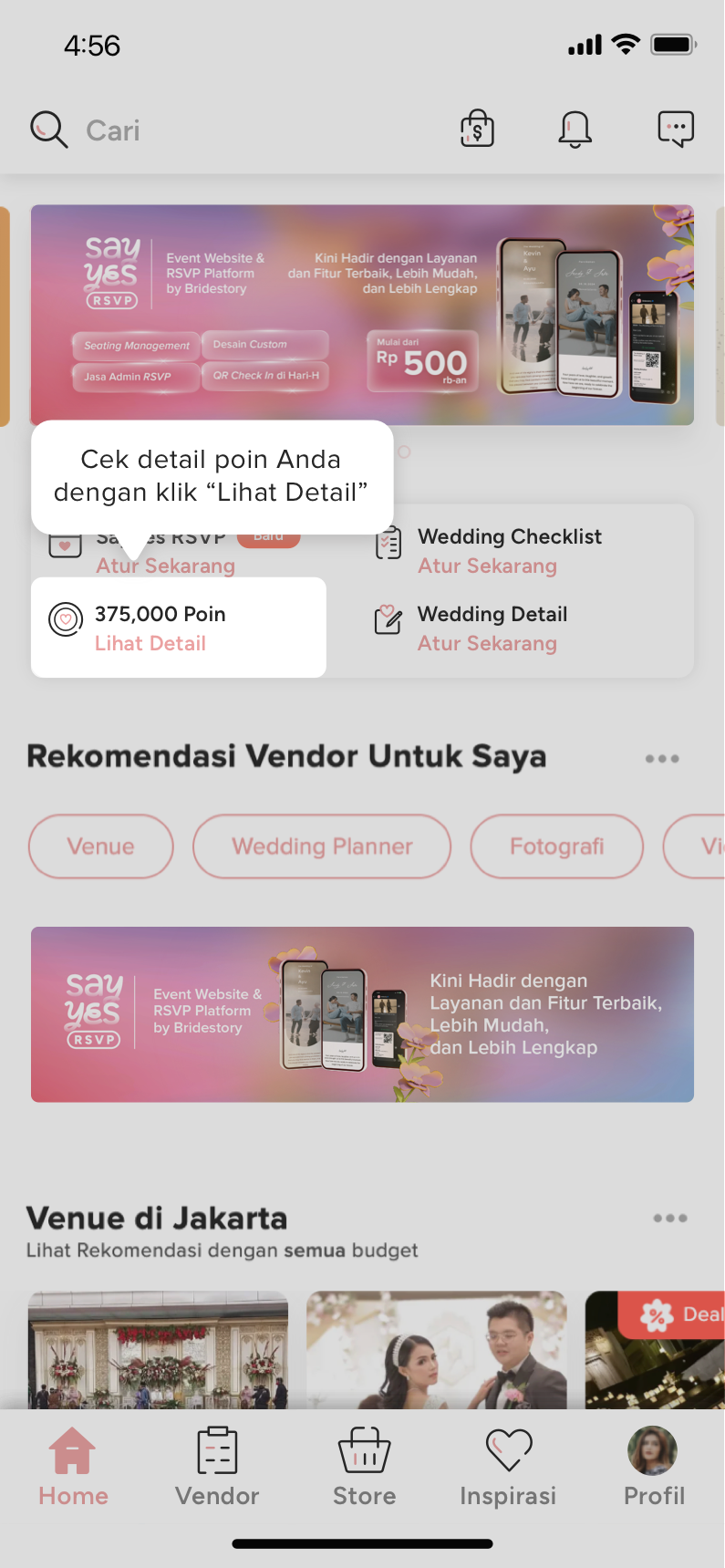 Jika Anda belum pernah memiliki poin sebelumnya, silakan pelajari selengkapnya tentang Wedding Points dan belanja produk pernikahan di Bridestory Deals untuk mengumpulkan poin sekarang!
