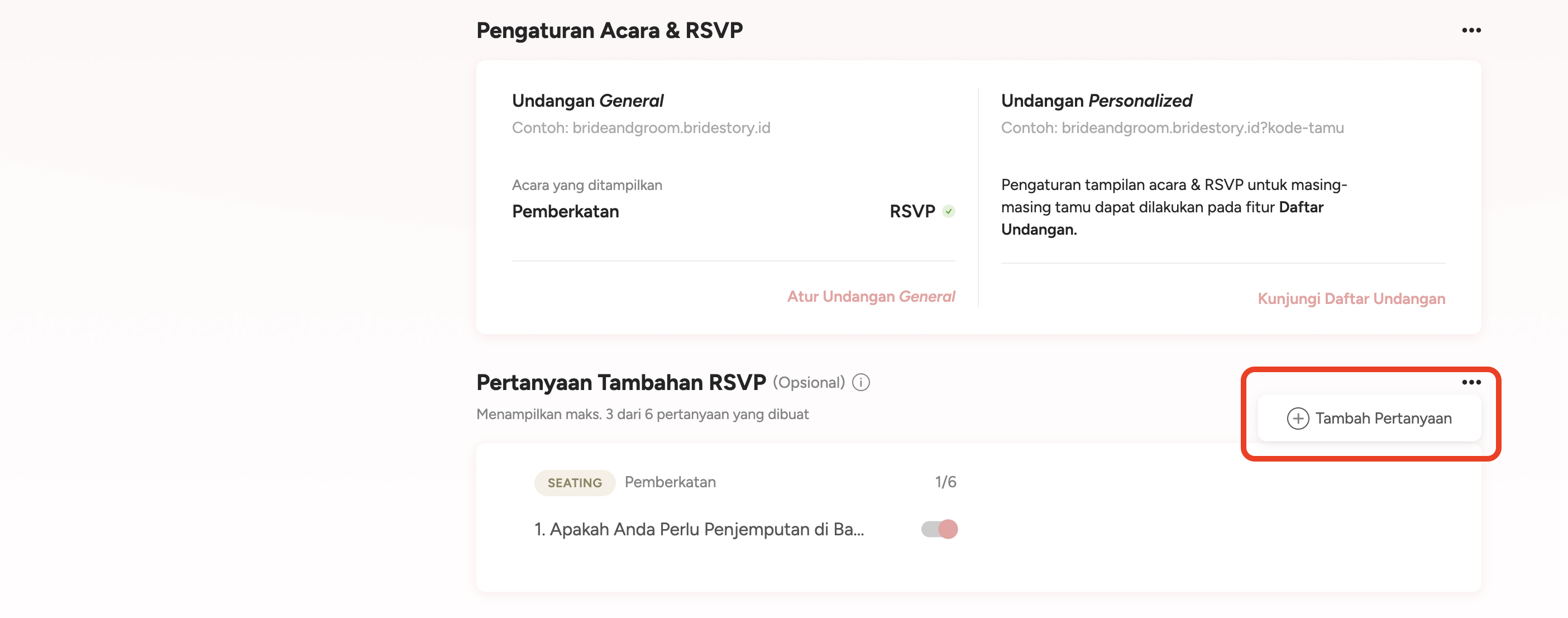 A. Pada bagian Pertanyaan Tambahan RSVP, klik Tambah Pertanyaan.