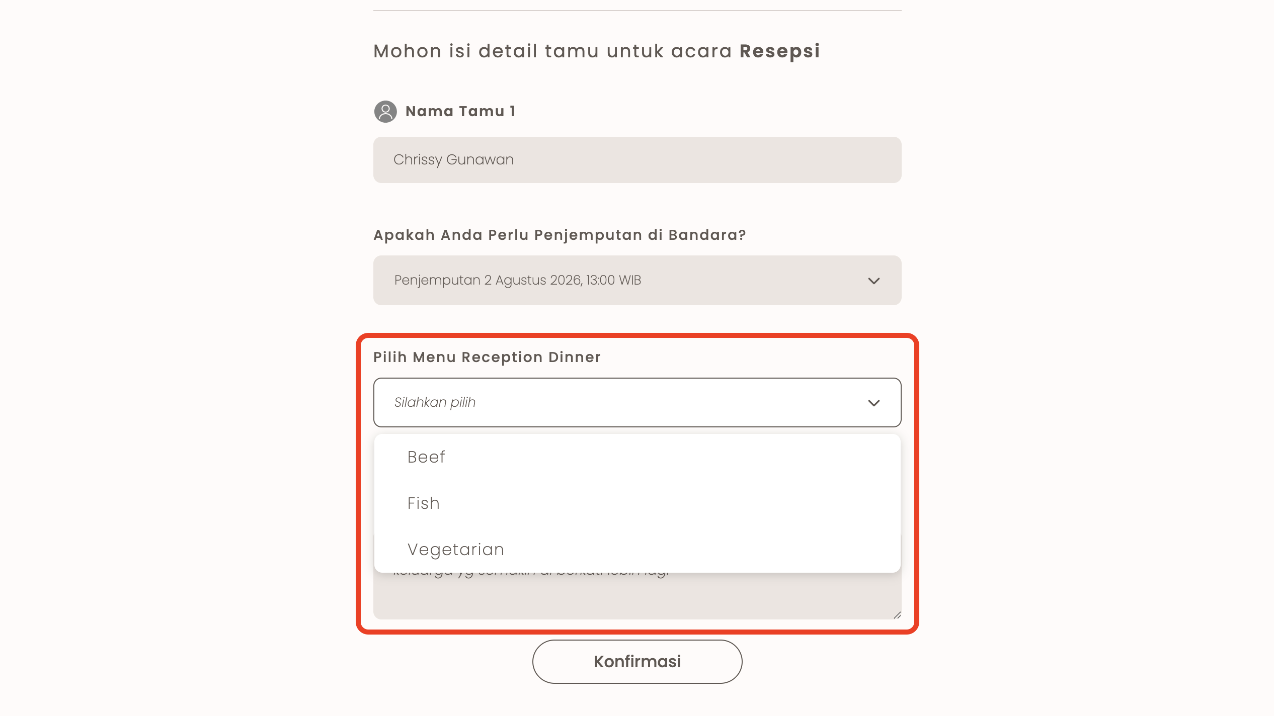D. Pertanyaan tersebut akan muncul di form RSVP yang akan diisi oleh tamu.